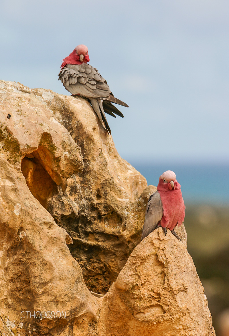 Some cheeky galahs were nesting in one of the golden towers, its cute pink face would pop its head out of one of the eroded holes.