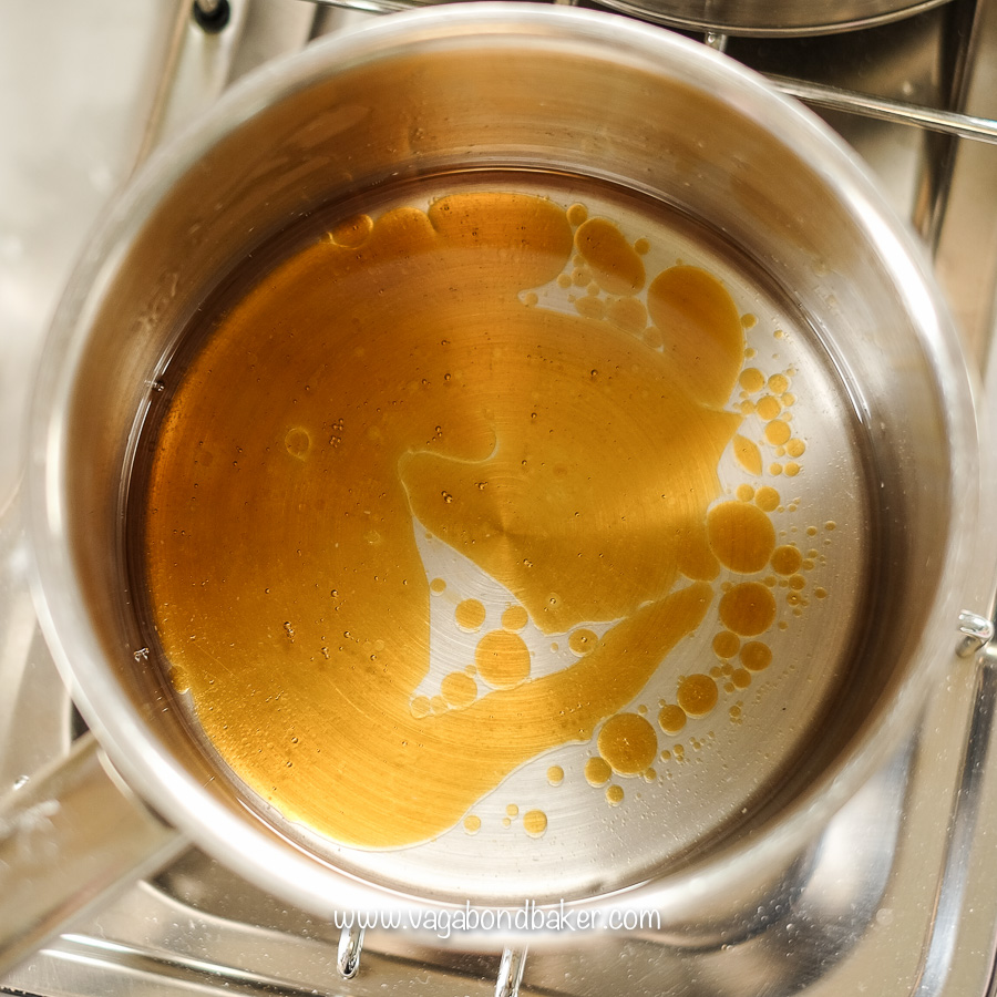 - Measure out the coconut oil into a pan and add the syrup, melt on the hob.
