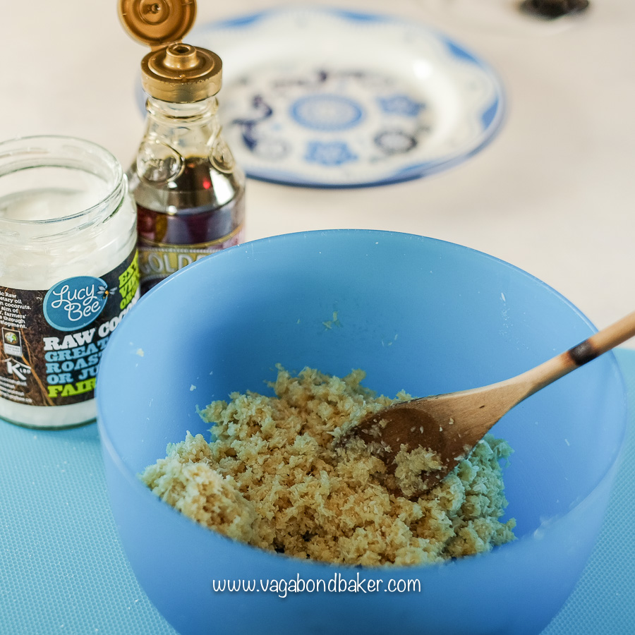 A simple recipe of coconut and ground almonds combined with coconut oil and a sweetening syrup to make moist little cookies.