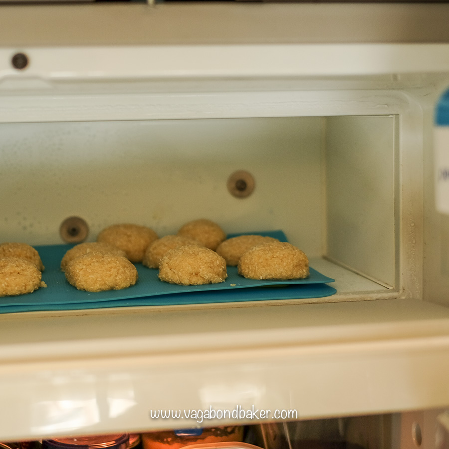 Freeze for around 15 minutes to solidify the coconut oil. My little van freezer did the job perfectly, I haven’t frozen anything else in it yet! Just big enough for a batch of macaroons.