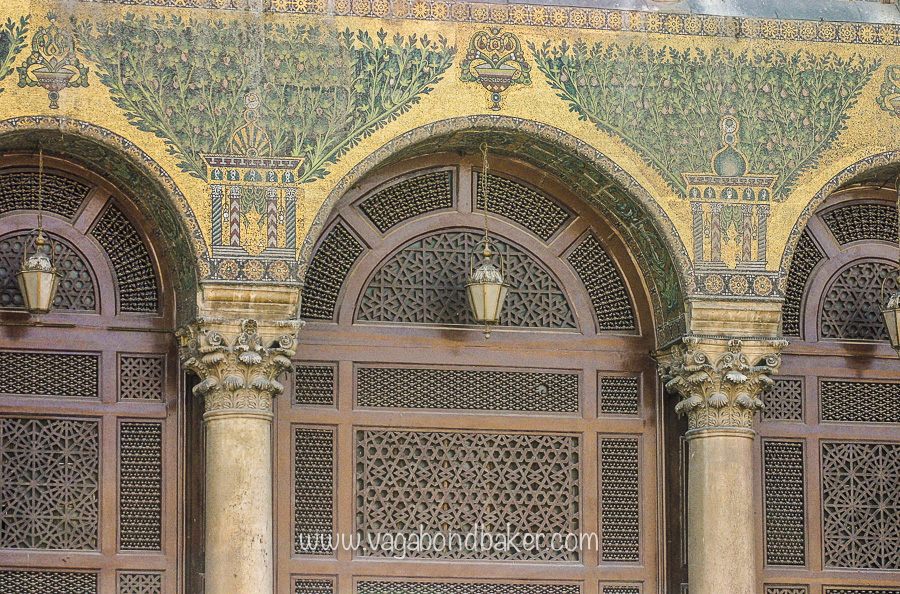 It dates from 715 and the glittering mosaics encrusting some of the walls and the Dome of the Treasury (seen in the above photograph) date from that era too, done by Byzantine craftsmen.