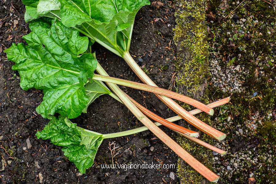 As well as my love of this fruit vegetable, the other main reason I bake a lot with rhubarb is that there is a magnificent rhubarb plant growing in the veg patch at our favourite, regular housesit, which is where I am right now.