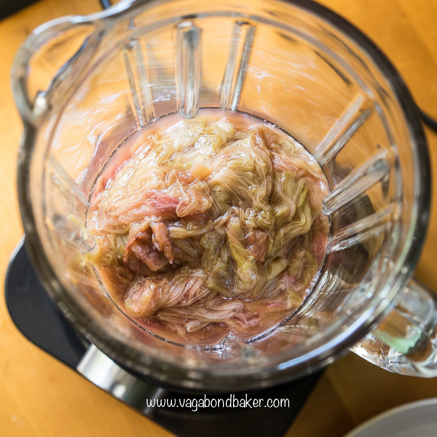 - Once the rhubarb is cooked whizz it up in a blender or with a stick blender in a jug.