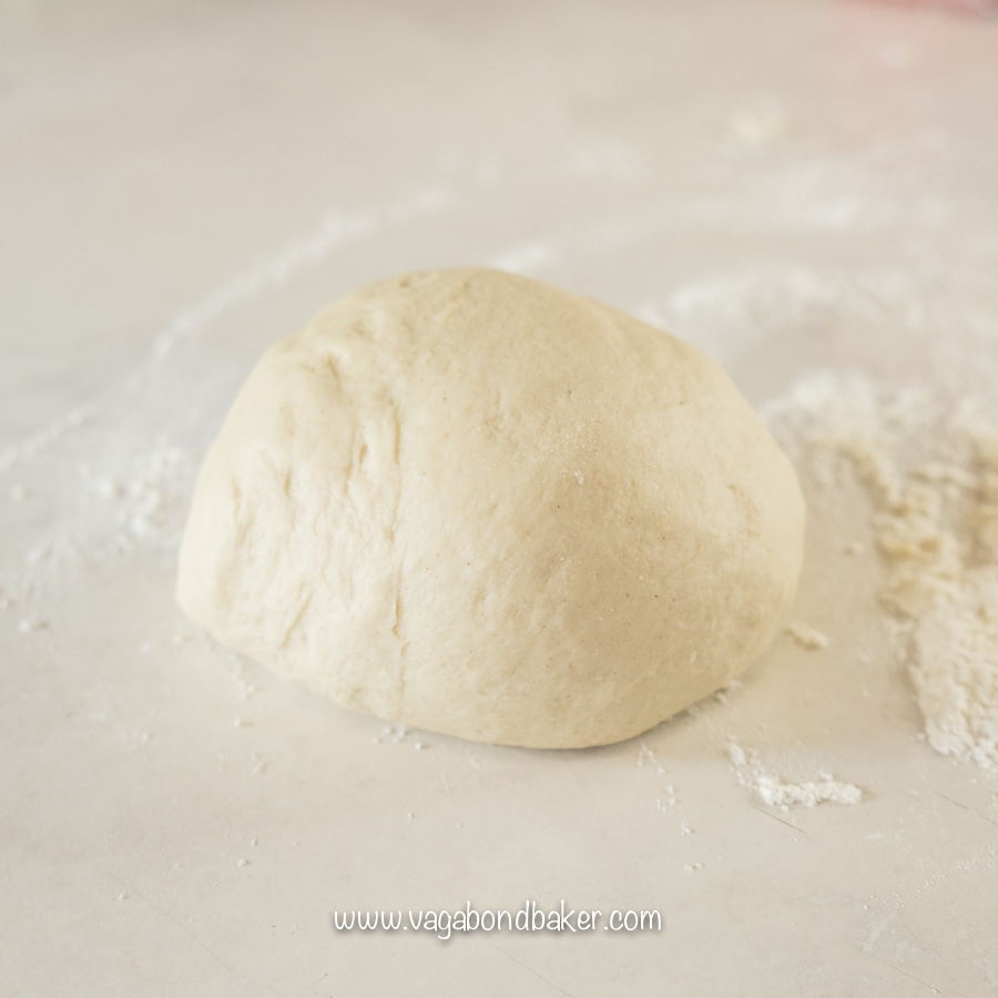 The dough should leave the bowl pretty clean. Tip out onto a flour-dusted work surface and knead for about 1 minute to give the dough a stretch, it should feel smooth and plump.