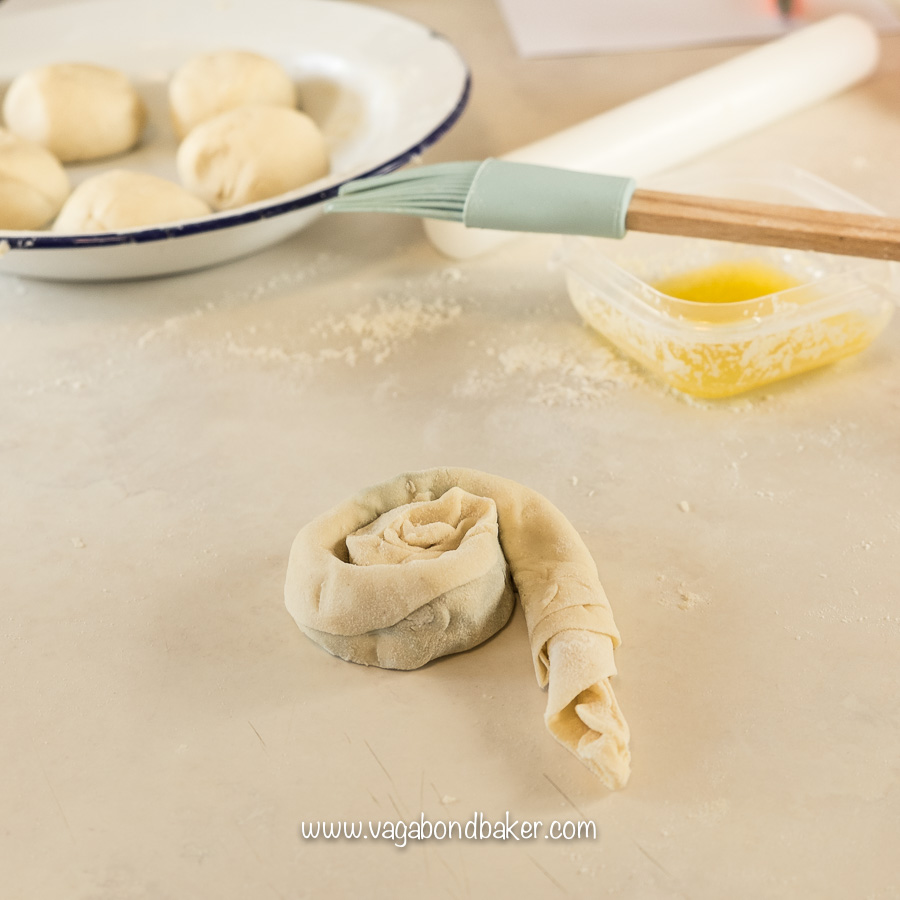 Squash it slightly with the palm of your hand then set it aside with you repeat the process with the rest of the dough.