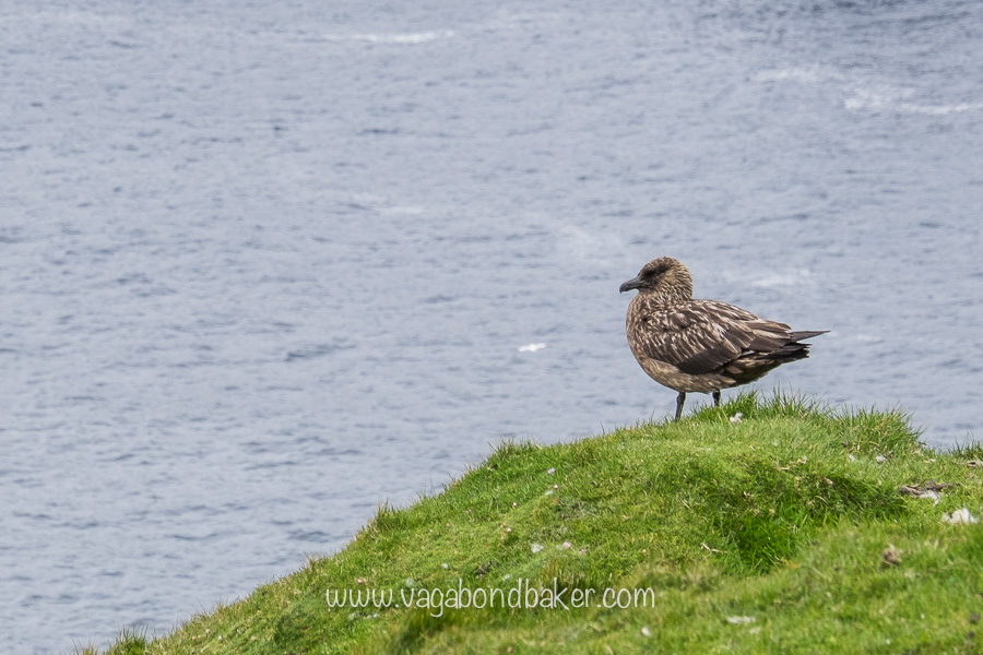Reaching the cliffs the north Atlantic ocean spread out in front of us; a cold wind gusted up over the cliff and Bonxies flying low from inland were suddenly thrust up by the updraft, giving them spectacular lift. I don’t know if birds can feel the rush, but these birds seemed to revel in the inclement weather.