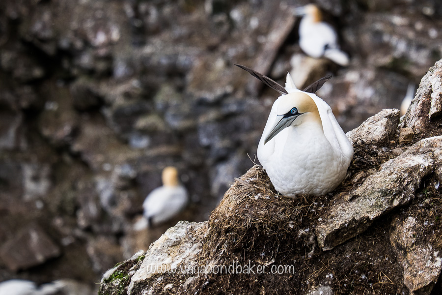 Gannets, Britain’s largest seabird, build their geometrically spaced nests using their own guano mixed with seaweed. As you can probably imagine, the smell is very pungent, even on a wild, windy summer afternoon.