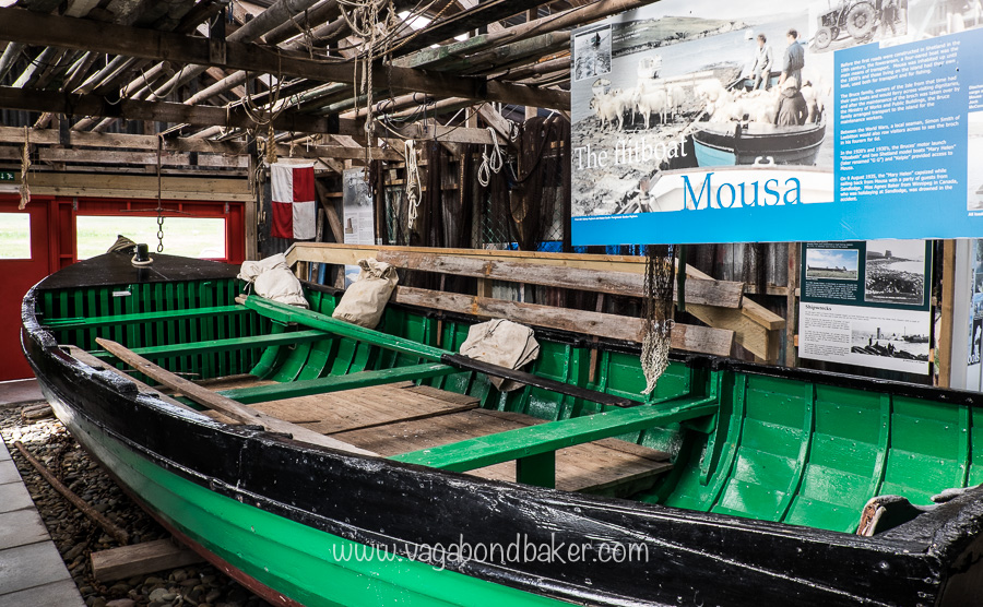 Our final week had begun by visiting Mousa. We woke to a bright sunny morning and joined the small queue waiting on the pier at Sandsayre for the Mousa Ferry. There is a little waiting room next to the pier with has an adjoining room set out as a museum complete with the original Mousa ferry – considerably smaller than the current boat.