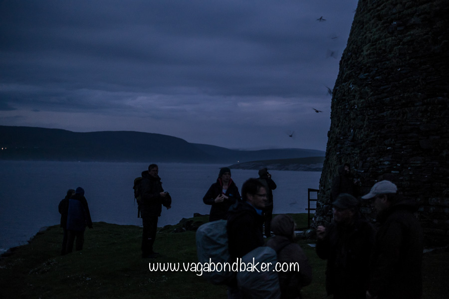 Then the magic happened, one by one the tiny Petrels appeared, swirling around the broch in the gloom. It was a surreal experience, the birds looked bat-like as they circled the stone building looking for their nests, there was something rather Tim-Burton-esque about the whole thing.