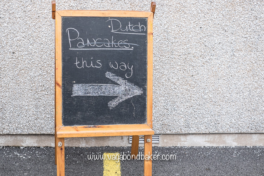 You would think we would have been suitably filled with all that cake, but no, we drove up to the North Roe hall (where we’d experienced our first Sunday Tea) for Dutch Pancakes. The hall had been decorated with the Dutch flag and cutlery lay on adorable napkins with clogs and windmills. The pancake afternoon was raising money for Breast Cancer, and we both went for a cheesy pancake – something savoury after all that cake!