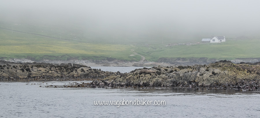 We walked the loop trail around the island from the ferry pier to the broch passing beautiful bays where seals dozed on rocks and swam in the calm sheltered water.