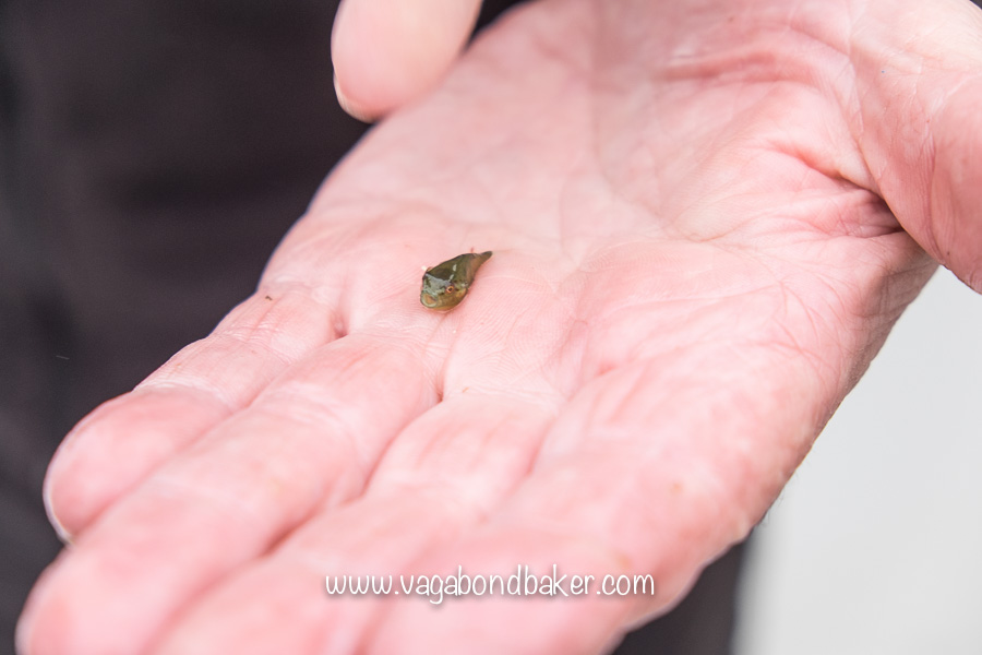 Ewen turned it over to reveal the most incredible treasure, her underside was heavy with eggs, thousands of tiny black beads coated her under-tail and her eggs gave her freedom, she was dropped back into the sea.