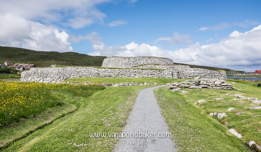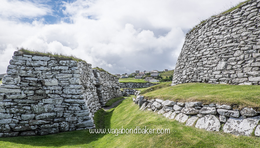 A long straight path leads down to the broch from the road, this is a two-thousand year old ruin in a semi-urban setting, a stone’s throw from Tesco yet with the serene Clickimin Loch lapping at its stony feet.