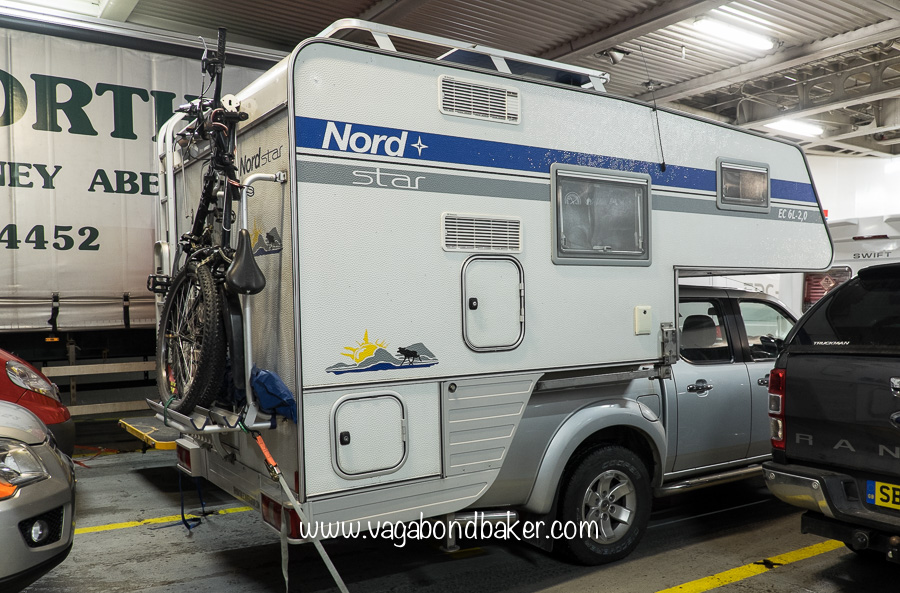 By late afternoon we were in the queue at the ferry terminal waiting to check the Thundertruck in. I’d booked a bed in a shared cabin for this return trip, after only having a seat on the way over: I need a bed, I can’t sleep in a chair.