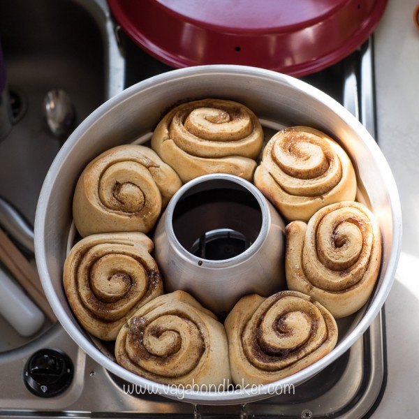 I baked cinnamon rolls in my new stove-top oven using my dough and filling from my Korvapuusti recipe – which was rather good because today is Cinnamon Roll Day (Happy Cinnamon Roll Day!) and I now have a little stash of them in my Thundertruck freezer!