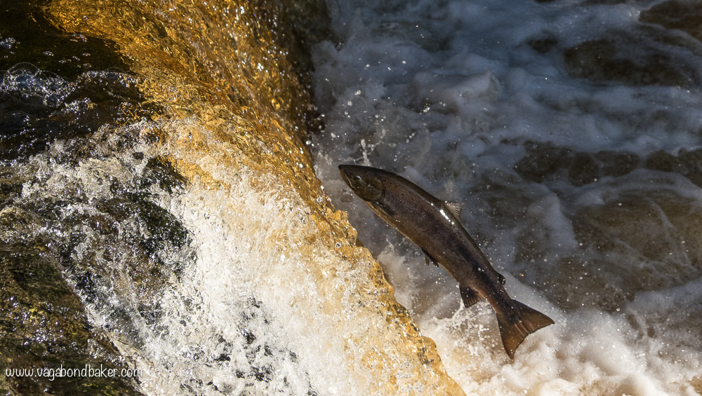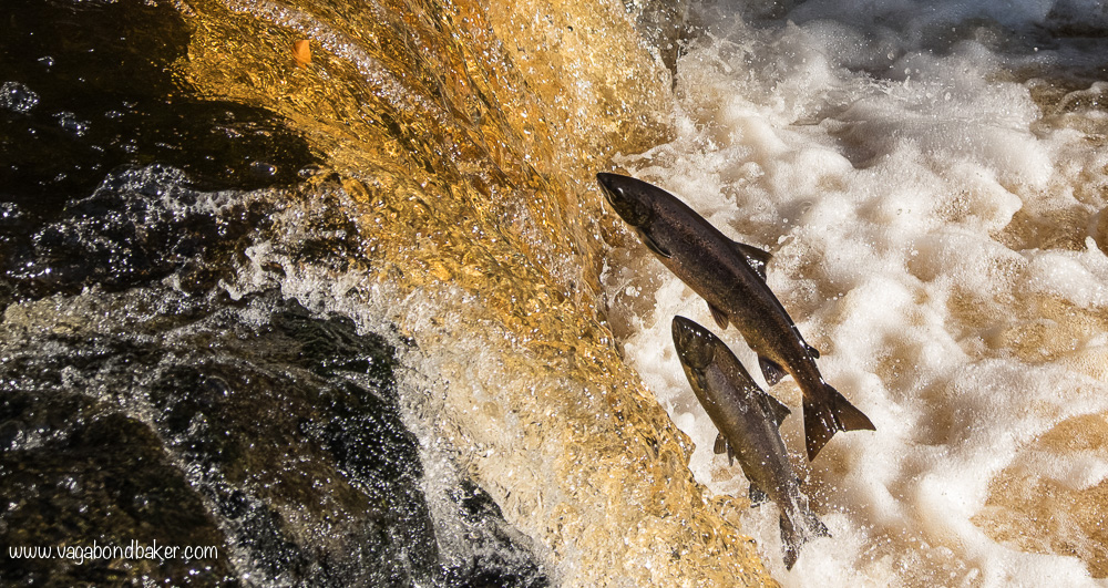 Again and again individual salmon would attempt the leap, repeatedly trying until they made it up the waterfall – only to be faced with another higher fall above them.