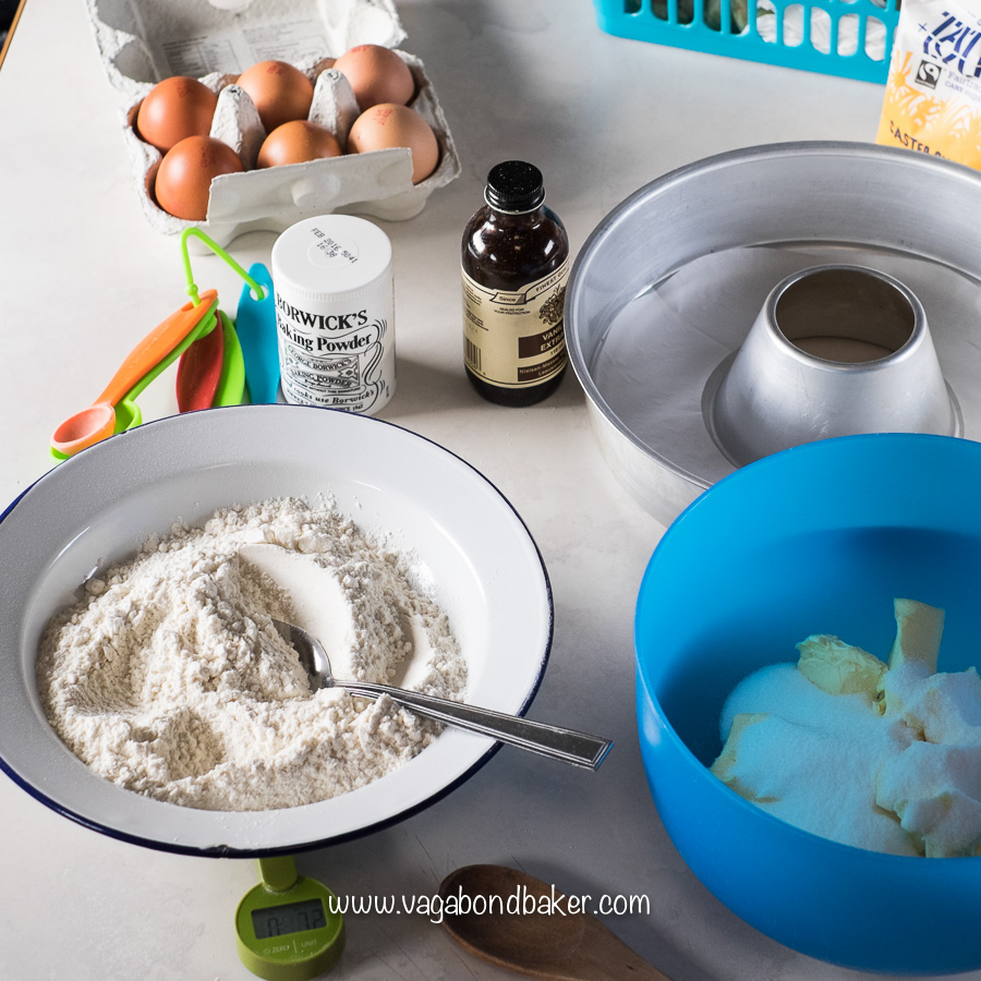Combine the rest of the flour with the baking powder and sift into the mixing bowl.