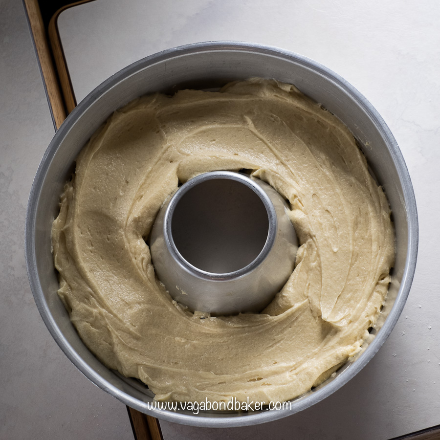 Fold the flour into the batter with a metal spoon using figure of eight movements.