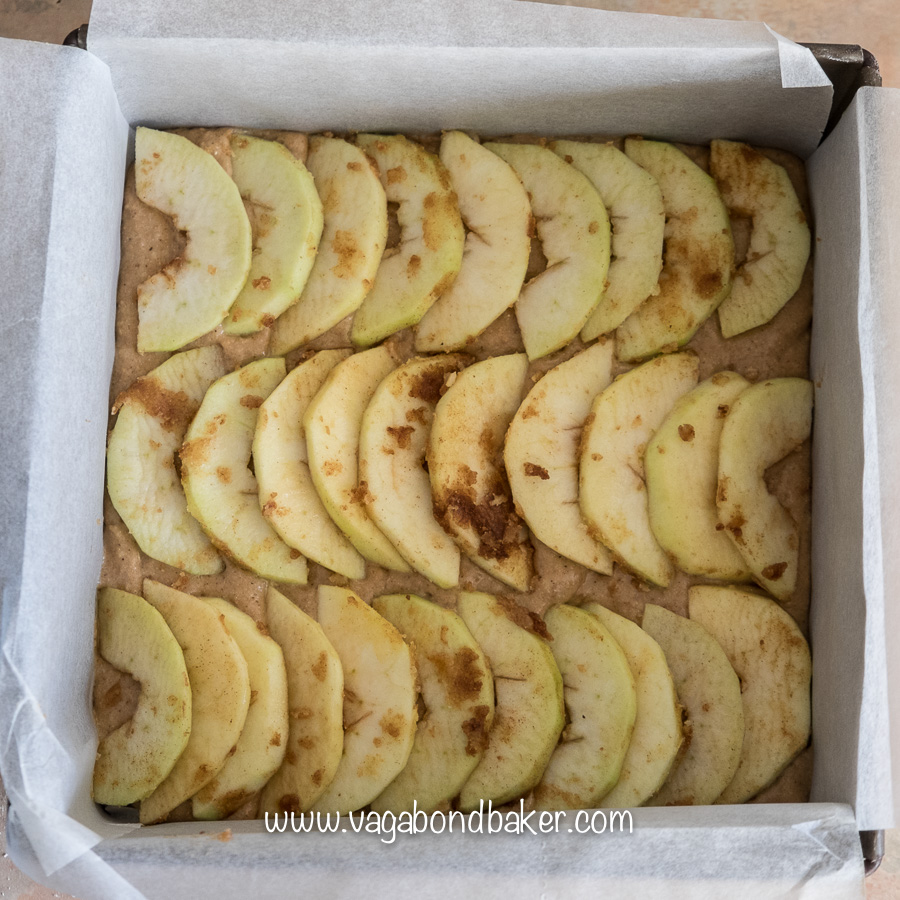 Arrange the apple slices artily over the batter or simply toss over with wild abandon.