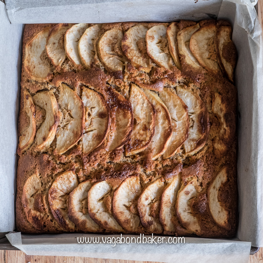 The apple slices add a chewiness to the cake, a delicious rustic finish of half-moons.