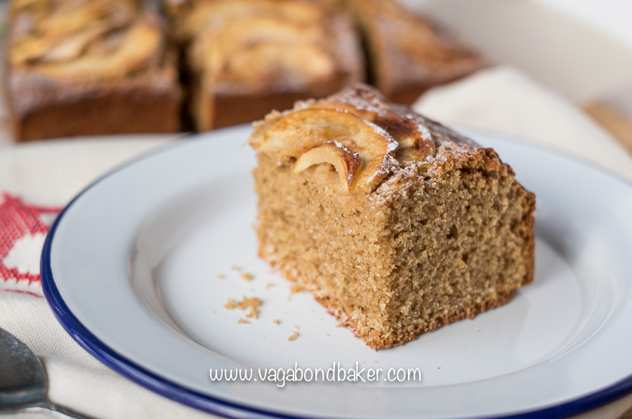 The apple slices add a chewiness to the cake, a delicious rustic finish of half-moons.