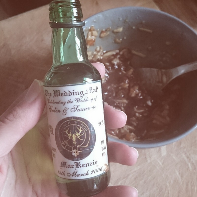 Sorting through a few things recently I found a miniature bottle of Scotch Whisky that had been a wedding favour: a wedding that had taken place in 2006!