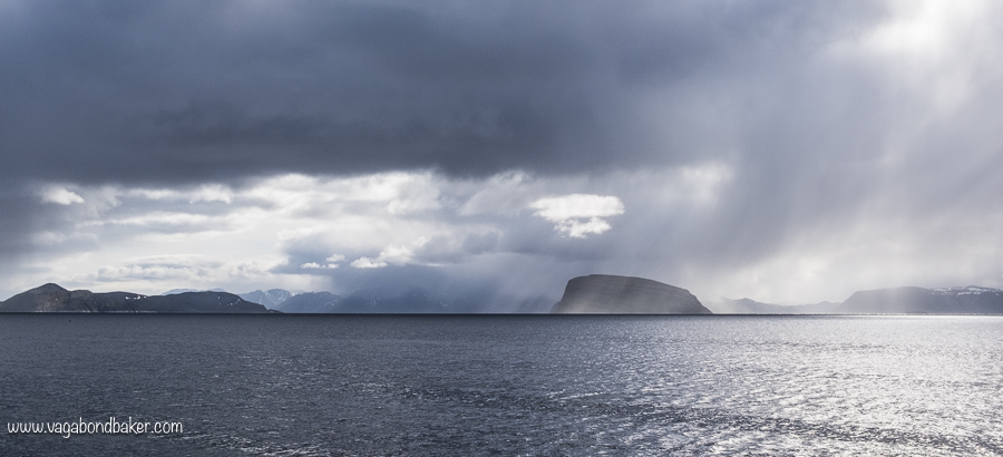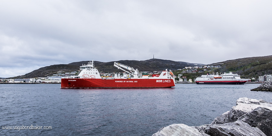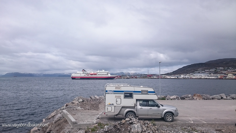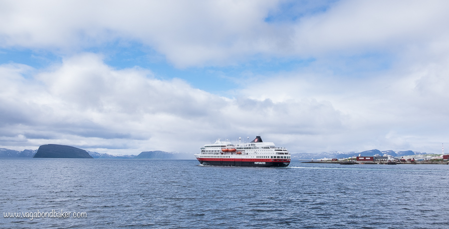 From the van we watched the Hurtigruten sail into the harbour the next morning.