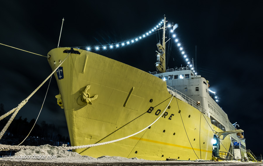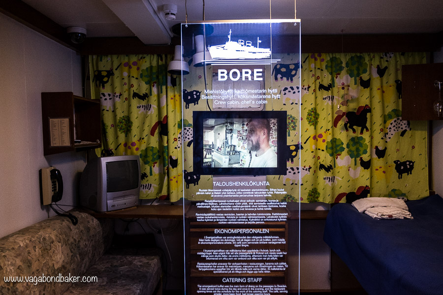 The accommodation is a HI Hostel and the museum parts of the ship are open 11.00 to 19.00. The museum parts can be visited as part of visiting the Forum Marinum or you can pay 6€ (2016) at the hostel reception. The MS Bore is around 3km from the centre of town. Bus Line 1.